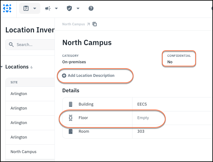 1. After creating the location object, you can update the other fields (Confidential, Description, and Floor).